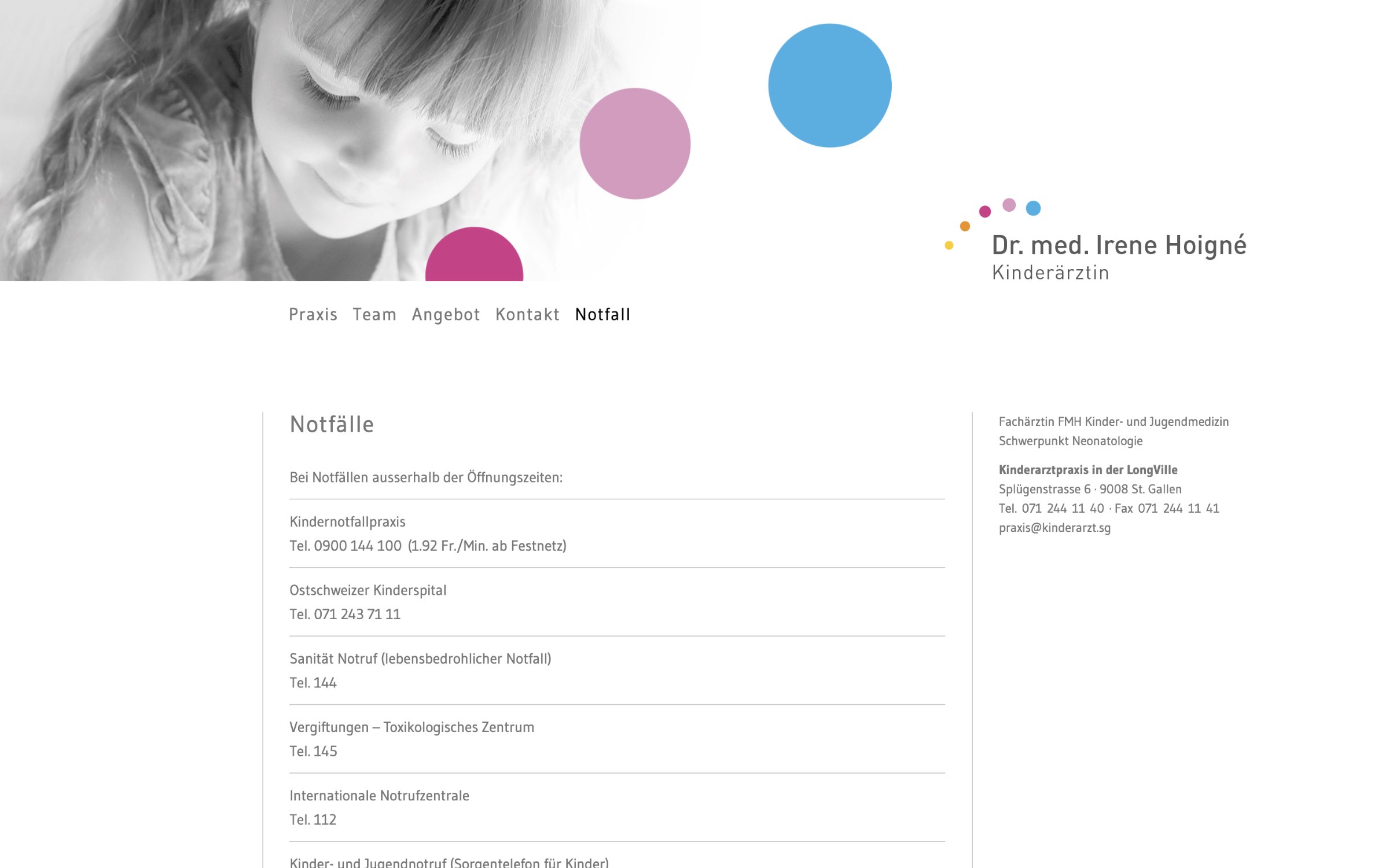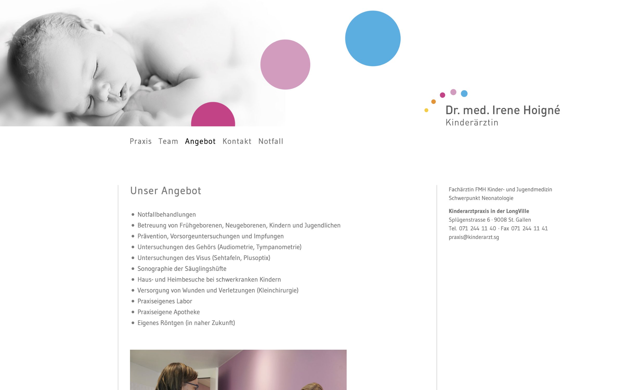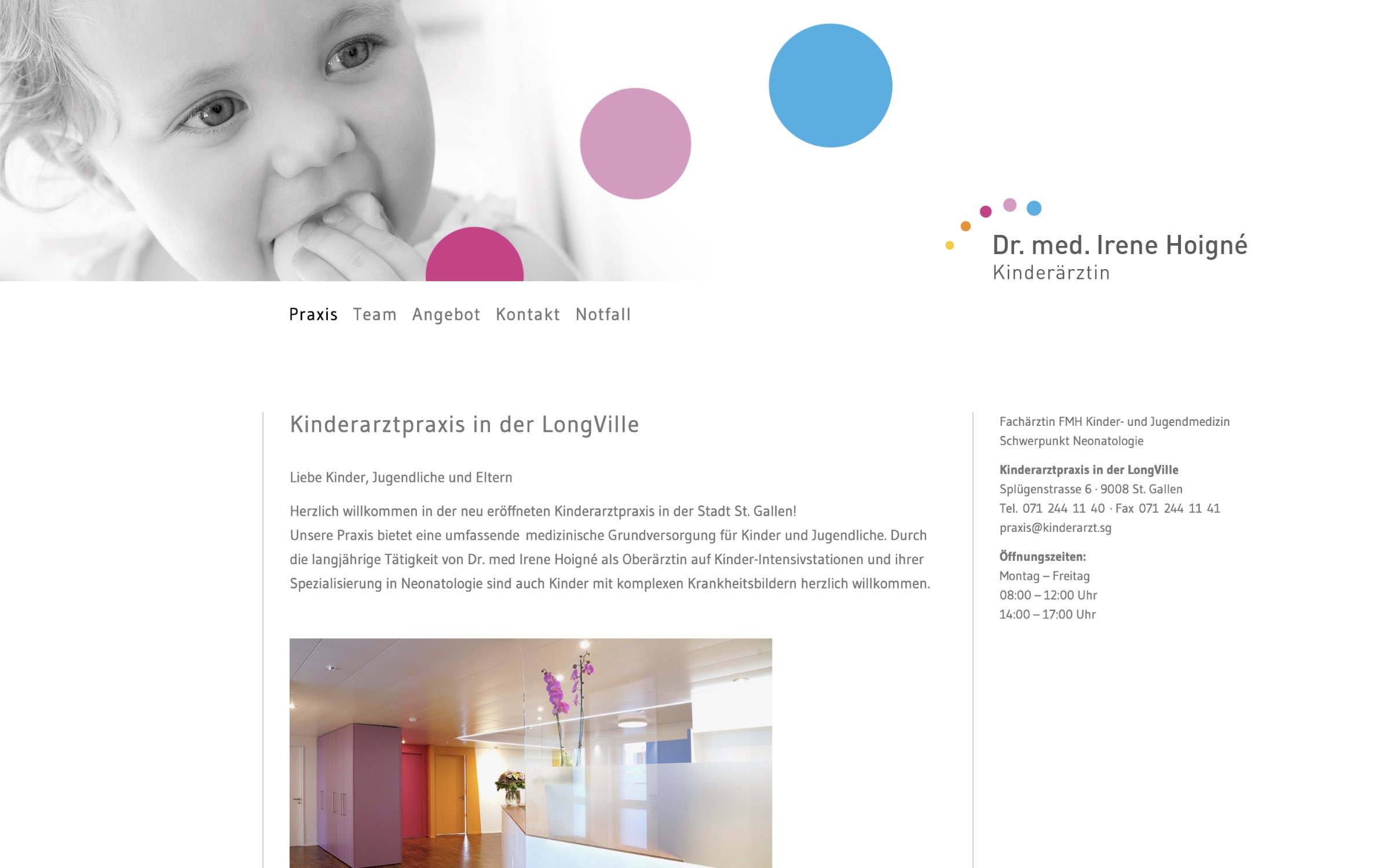 Die Kinderarztpraxis im Osten der Stadt St. Gallen bietet eine umfassende medizinische Grundversorgung für Kinder und Jugendliche. Neben dem Corporate Design mit Logo, Briefschaften und Website gestalteten wir auch diverse Aussen- und Innenbeschriftungen sowie Inserate und Einladungskarten zur Praxiseröffnung.