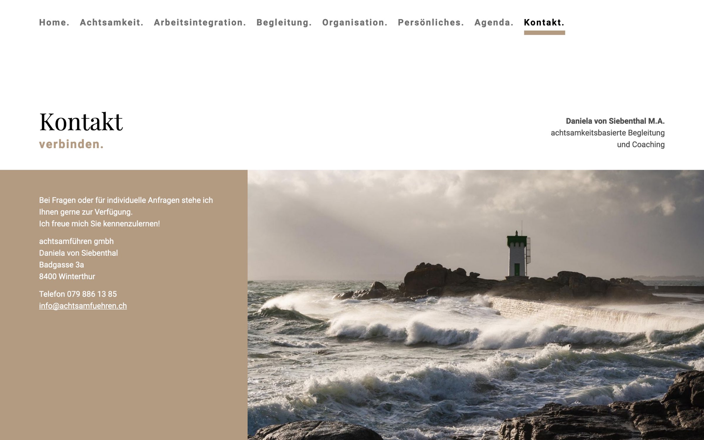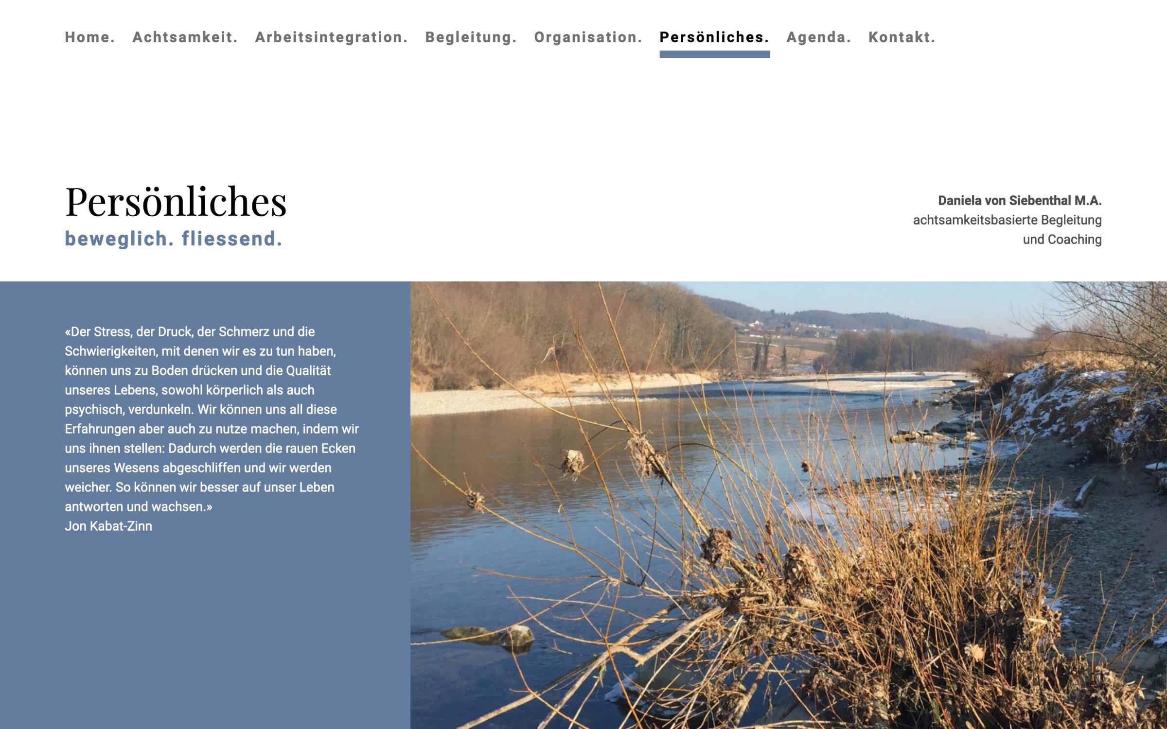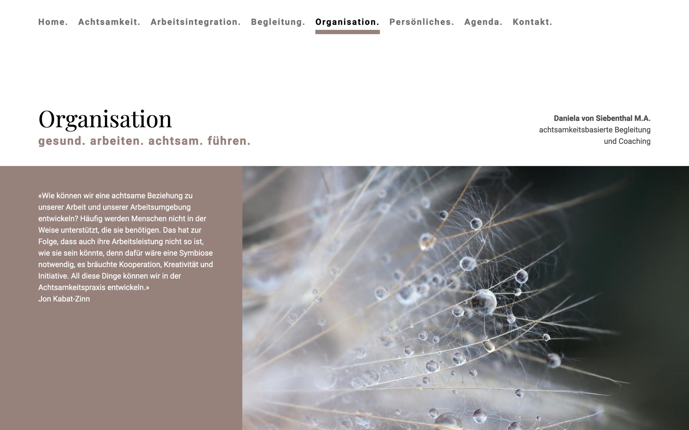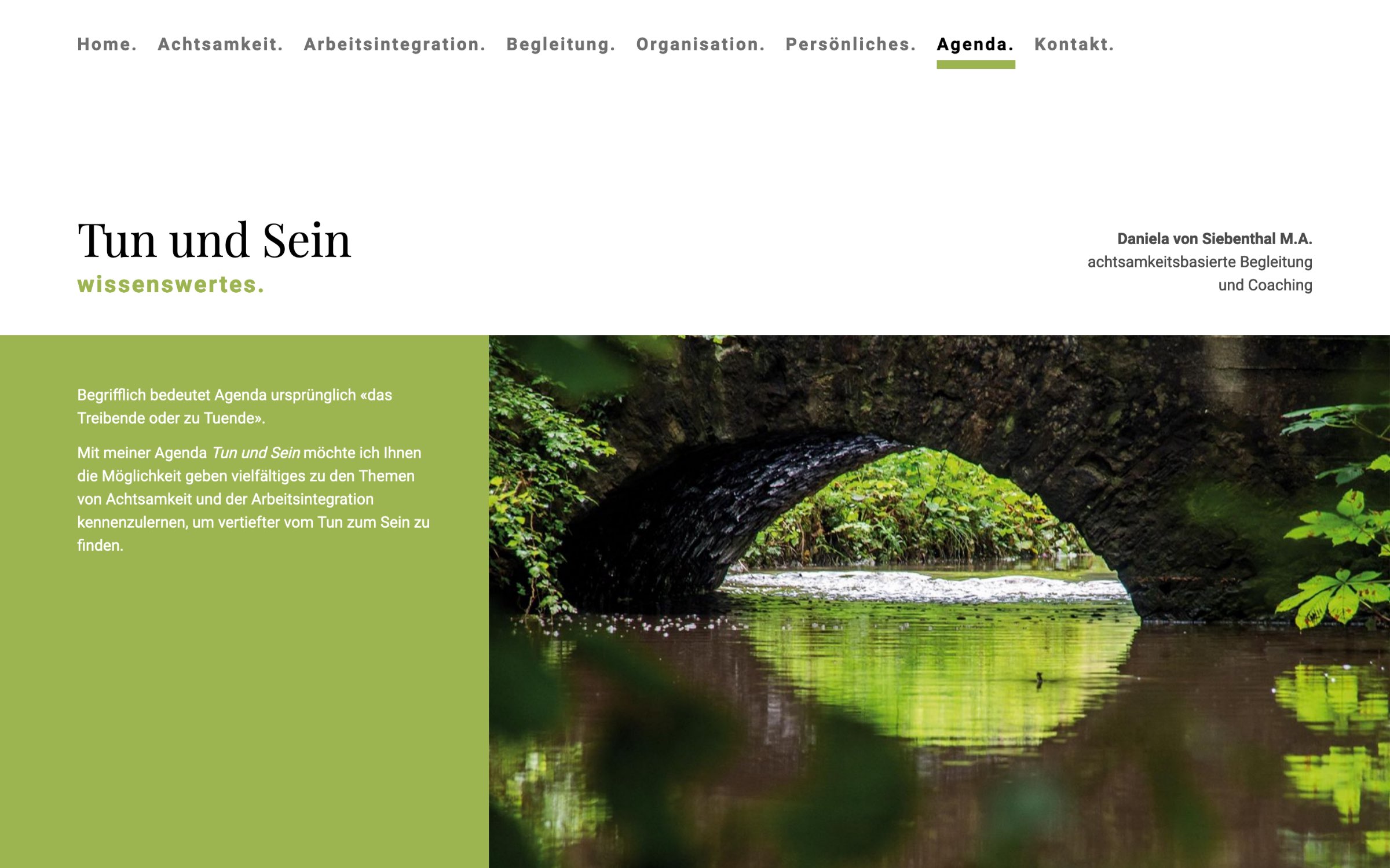 Die Entwicklungen in der Arbeitswelt haben die Lebens- und Arbeitsbedingungen der Menschen tiefgreifend gewandelt. Viele Berufstätige erleben ihren Beruf als psychisch belastend. Achtsamkeitsbasierte Begleitung und Coaching ist ein wertvolles Hilfsmittel in der immer komplexer werdenden Arbeitswelt. Wir wurden mit dem grafischen Konzept und der Gestaltung dieser anspruchsvollen Homepage beauftragt.